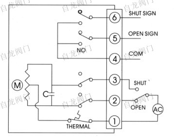上海自龍閥門制造有限公司 精小型電動執(zhí)行器接線 一、什么是精小型電動執(zhí)行器 精小型電動頭是上世紀九十年代末發(fā)明的新型電動執(zhí)行器,較比老型的電 動執(zhí)行器精小型電動頭采用上裝式結(jié)構(gòu),在高壓、大口徑條件下減少了閥體自 身的連接螺栓,增強了閥門的可靠性且能克服系統(tǒng)自重對閥門正常工作的影 響。使得電動閥門自身重量減輕,克服了安裝管道承重過大,維修、更換過于 笨重的問題。  上海自龍閥門制造有限公司生產(chǎn)的精小電動執(zhí)行器分為開關(guān)型電動執(zhí)行器, 無源型電動執(zhí)行器,調(diào)節(jié)型電動執(zhí)行器,智能型電動執(zhí)行器,型號分別為ZL- 05,ZL-10,ZL-20,ZL-40W,ZL-60,ZL-100,ZL-200,ZL-05A,ZL-10A, ZL-20A,ZL-40A,ZL-60A,ZL-100A,ZL-200A系列電動執(zhí)行機構(gòu)適用于部分 回轉(zhuǎn)類閥門(如蝶閥、球閥和風(fēng)門擋板等),采用優(yōu)質(zhì)鋁合金壓鑄件外殼,精 細流暢,體積小重量輕、免維護、耐腐蝕性強等優(yōu)良性能,可在狹窄地方使 用。精小型開關(guān)型、無源觸點型電動頭,ZL-40W精小型電動執(zhí)行器廣泛應(yīng)用于 樓宇自動化、水利、造紙、電力、化工等自動化控制系統(tǒng)。  1、功能強勁:智能型、比例式、開關(guān)式、各類信號輸出型應(yīng)有盡有 2、體積小巧:體積僅相當于同類產(chǎn)品的35%左右 3、輕便宜人:重量僅相當于同類產(chǎn)品的30%左右 4、性能可靠:軸承牙口電氣元件等關(guān)鍵零部件采用進口名牌產(chǎn)品 5、美觀大方:鋁合金壓鑄外殼、精細流暢、且可減少電磁干擾 6、精密耐磨:蝸輪輸出軸一體化特殊錒合金鍛造、強度高、耐磨性好 7、回差極?。何佪嗇敵鲚S一體化、避免了鍵聯(lián)結(jié)的間隙、傳動精度高 8、安全保證:小型電動執(zhí)行器通過1500V耐壓檢測,F(xiàn)級絕緣電機,安全有保障 9、配套簡單:小型電動執(zhí)行器采用單相電源、外接線路特別簡單,也可做380V、直流電源 10、使用方便:免加油、免點檢、防水防銹、任意角度安裝 11、保護裝置:雙重限位、過熱保護、過載保護(選裝) 12、多種速度:小型電動執(zhí)行器全行程時間5秒、10秒、15秒、30秒、60秒、100秒等 13、防腐防銹:支架、聯(lián)軸器、螺釘均采用不銹鋼 14、智能數(shù)控:小型電動執(zhí)行器數(shù)字設(shè)定、數(shù)字整定、高度精確、自診斷、一機多能 15、集成一體:小型電動執(zhí)行器智能控制模塊高度集成于電動裝置本體中,無須外接定位器等 二、精小型電動執(zhí)行器接線方法 下面是精小型電動頭中最常見的一種執(zhí)行器,采用的是無源觸電接線  圖中1號是零線,2號、3號是火線,執(zhí)行器采用的是齒輪順時針轉(zhuǎn)動與逆時 針轉(zhuǎn)動原理,1與2相連是閥門開啟,1與3相連是閥門關(guān)閉,作為無源觸點電動 執(zhí)行器,執(zhí)行器本身還有信號反饋的功能,如圖,4、5、6,對應(yīng)的是1、2、 3。如有需要安裝反饋信號指示燈,請按照1、2、3的接線進行對應(yīng)接線。 精小型電動頭作為簡單便捷的電動執(zhí)行器,其應(yīng)用范圍很廣泛,廣泛應(yīng)用于 樓宇自動化、水利、造紙、電力、化工等自動化控制系統(tǒng)。我公司專業(yè)生產(chǎn)與 設(shè)計各類執(zhí)行器,歡迎來電詢問:021-5160 1991 www.xzz003.com