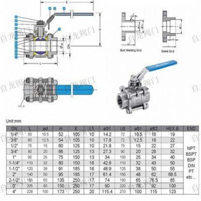 名    稱: 不銹鋼三片式球閥(3PC)Q11F-16/64C/P/R