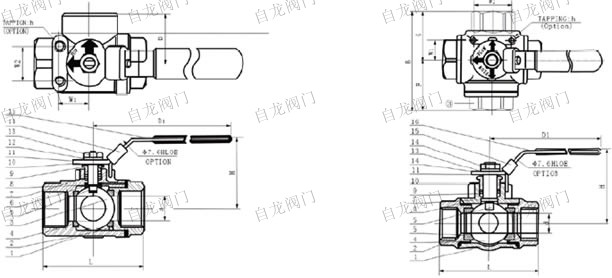 1000WOG三通不銹鋼球閥 結(jié)構(gòu)圖