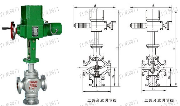 上海自龍閥門制造有限公司生產(chǎn)的ZAZQ(X)型電動三通合流(分流)調(diào)節(jié)閥有合流和分流二種型式,由DKZ電動執(zhí)行機構(gòu)和三通合流或三通分流調(diào)節(jié)組成,以電源為動力,接受統(tǒng)一的標準信號0~10mA DC或4-20mA Dc驅(qū)使閥門開度與此操作信號相對應。合流閥的作用是將一種流體分成兩路流體。分流合流閥只能對應選用,但當DN≤80時,合流閥可用于分流場合??商娲鷥膳_單、雙座調(diào)節(jié)閥,節(jié)省投資,占據(jù)空間小。三通調(diào)節(jié)閥通常用于熱交換器的兩種介質(zhì)調(diào)節(jié),及簡單的配比調(diào)節(jié)。