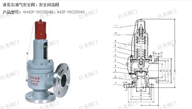 上海自龍閥門制造有限公司生產的液化石油氣安全閥又叫安全回流閥(產品型號:AH42F、A42F多種叫法: 液化氣安全閥、石油氣安全閥、回流安全閥、天然氣安全閥):本閥適用于工作溫度在-40~80℃的液化石油氣的液相出口管上,當進出口壓差大于0.5MPa時液化石油氣能自動回流入罐